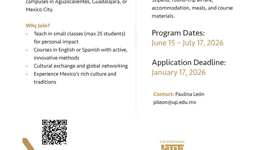 Universidad Panamericana din Mexic anunță deschiderea apelului pentru profesorii interesați să partici …
