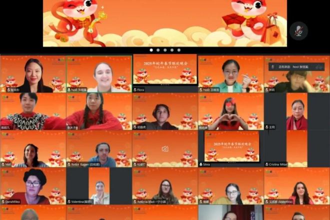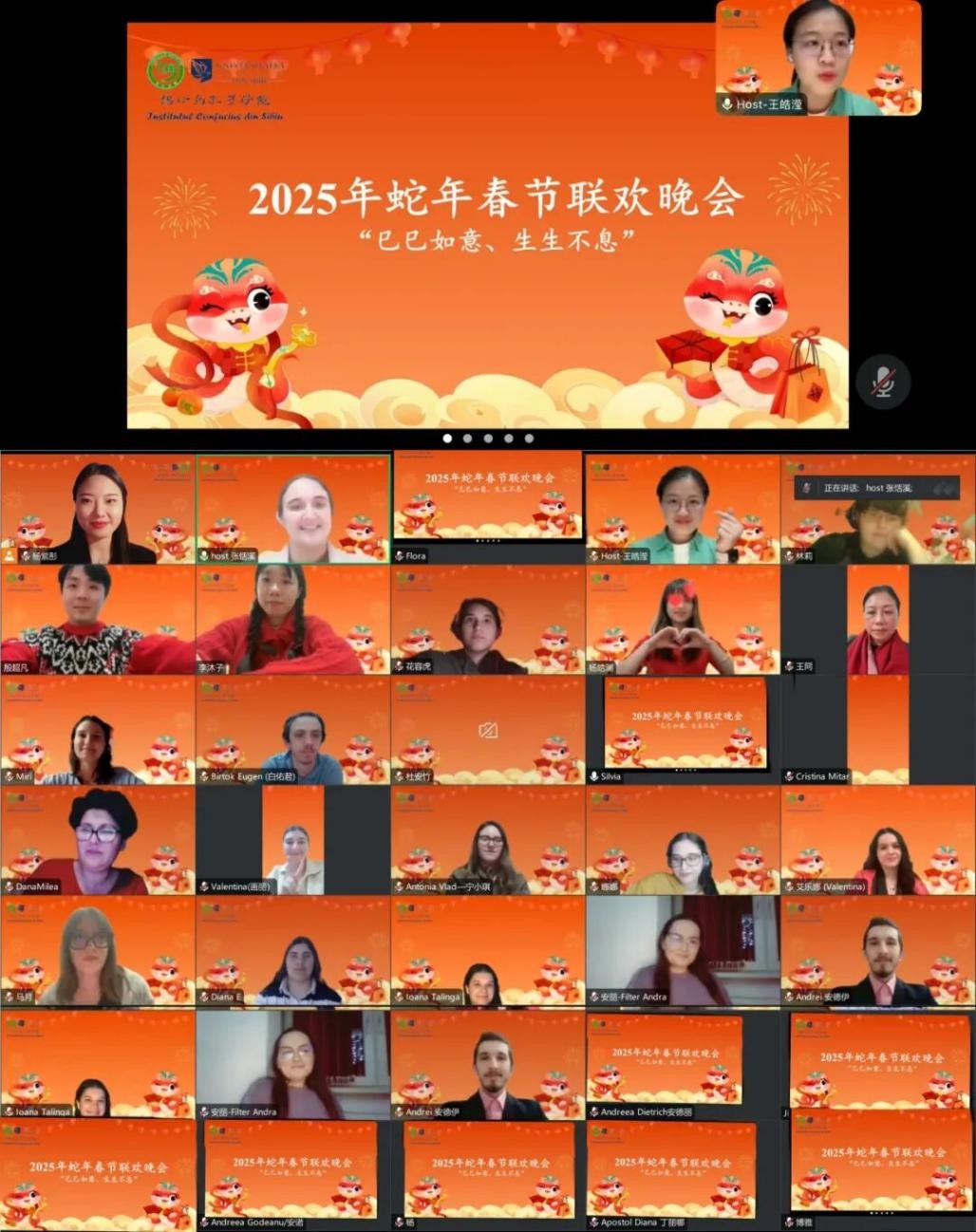 The Virtual Spring Festival Gala, “Endless Prosperity, Eternal Vitality,” featured songs, Hanfu dances, and guzheng performances by students from Vâlcea, Deva, Pitești, Bucharest, and Sibiu, along with a festive lucky draw.